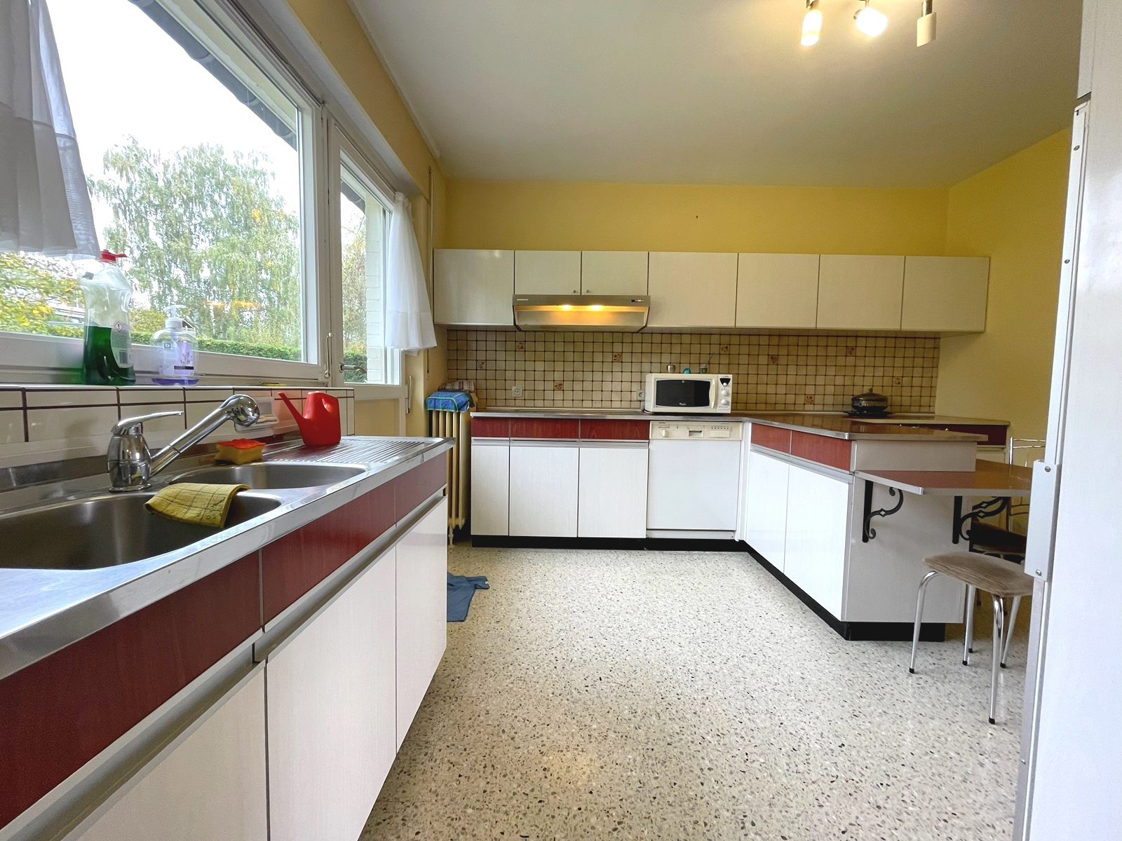 Située dans un quartier calme et résidentiel, cette villa 4 façades dispose d’un terrain de 827 m². La maison propose de beaux espaces de vie au rez-de-chaussée, avec la possibilité d’aménager un grand séjour ouvert sur la cuisine. La présence de deux chambres, à deux marches d’écart du séjour, permet de se projeter longtemps dans cette maison. A l’étage, on retrouve actuellement 1 chambre, 1 bureau et deux pièces grenier, qui vous permettront assez facilement de transformer le bien en 4 chambres et une pièce supplémentaire à définir. Le garage deux voitures en enfilades et les deux caves, sont un plus non négligeable.
