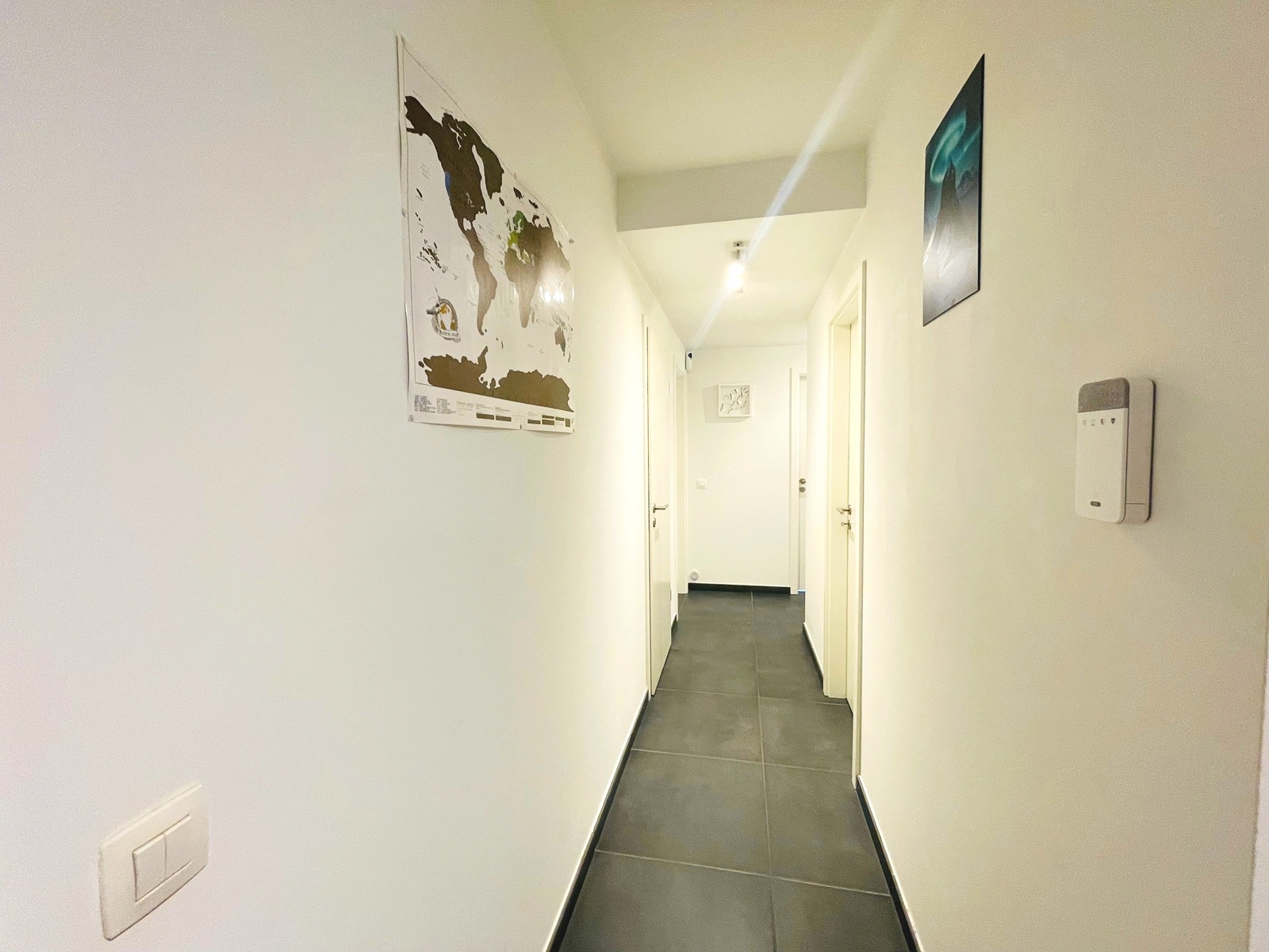 Techniques : loyer comprenant l’assurance locataire, internet, tv et téléphonie fixe, électricité conforme, DV avec ventilation, luminaires dans toutes les pièces, chauffage sol dans le séjour, adoucisseur d’eau, chaudière gaz Viessmann, vidéophonie Bticino, ascenseur, panneaux solaires pour la copropriété, facilité de parking dans le complexe, PEB B – 89 kWh/m²/an – 10.271 kWh/an – 20210810505192.